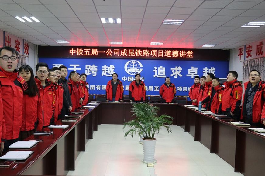 “闪烁星空是眼睛/浩瀚大海是心胸/巍巍高山是脊梁/铁流滚滚舞巨龙……”1月1日上午10时,一首激情豪迈《开路先锋》拉开了成昆项目第四次“道德讲堂”的序幕,49名干部职工齐聚一堂,以别开生面的方式奏响了新年的乐章。